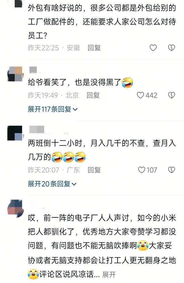 小米这几年冲击高端市场,造车、搞AI、卷手机,压力确实大。但“强制工时”这种操作,很容易翻车,毕竟不是一些小企业,像它们这种一有点风吹草动就是一大片的报道。